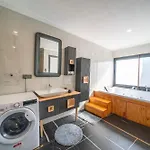 Villa comprend une salle de bains avec une baignoire spa, un bain à remous et une toilette séparée. Un sèche-cheveux, des draps de bain et des pantoufles sont également fournis.